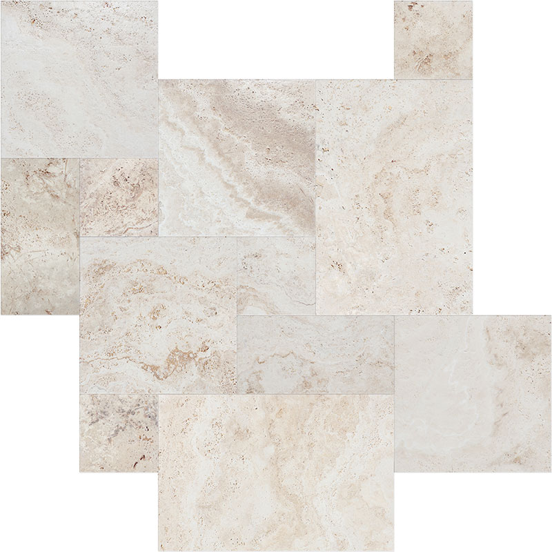 Rustic White Travertine Brushed Tile French Pattern Set 1/2 Thickness